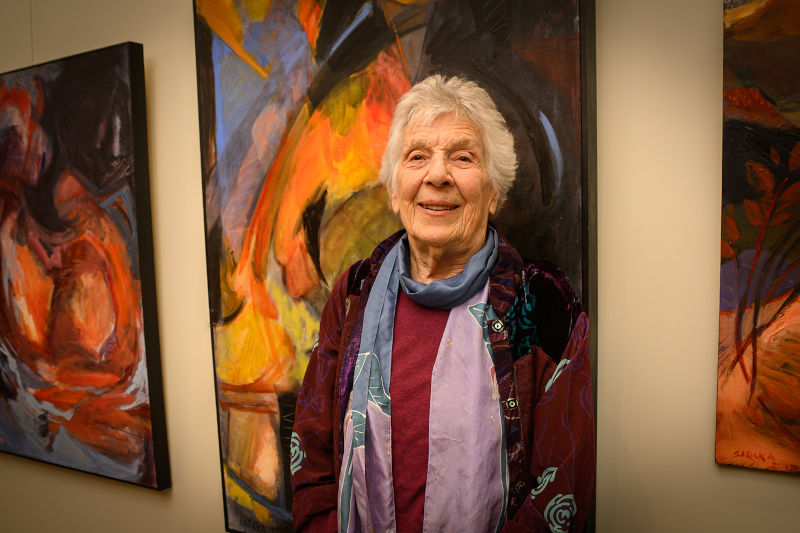 Eventually our conversation turned to art. We had just visited her exhibition of acrylic paintings at the Vermont Supreme Court Gallery, and we were eager with questions. When did she start painting? Who inspired her?